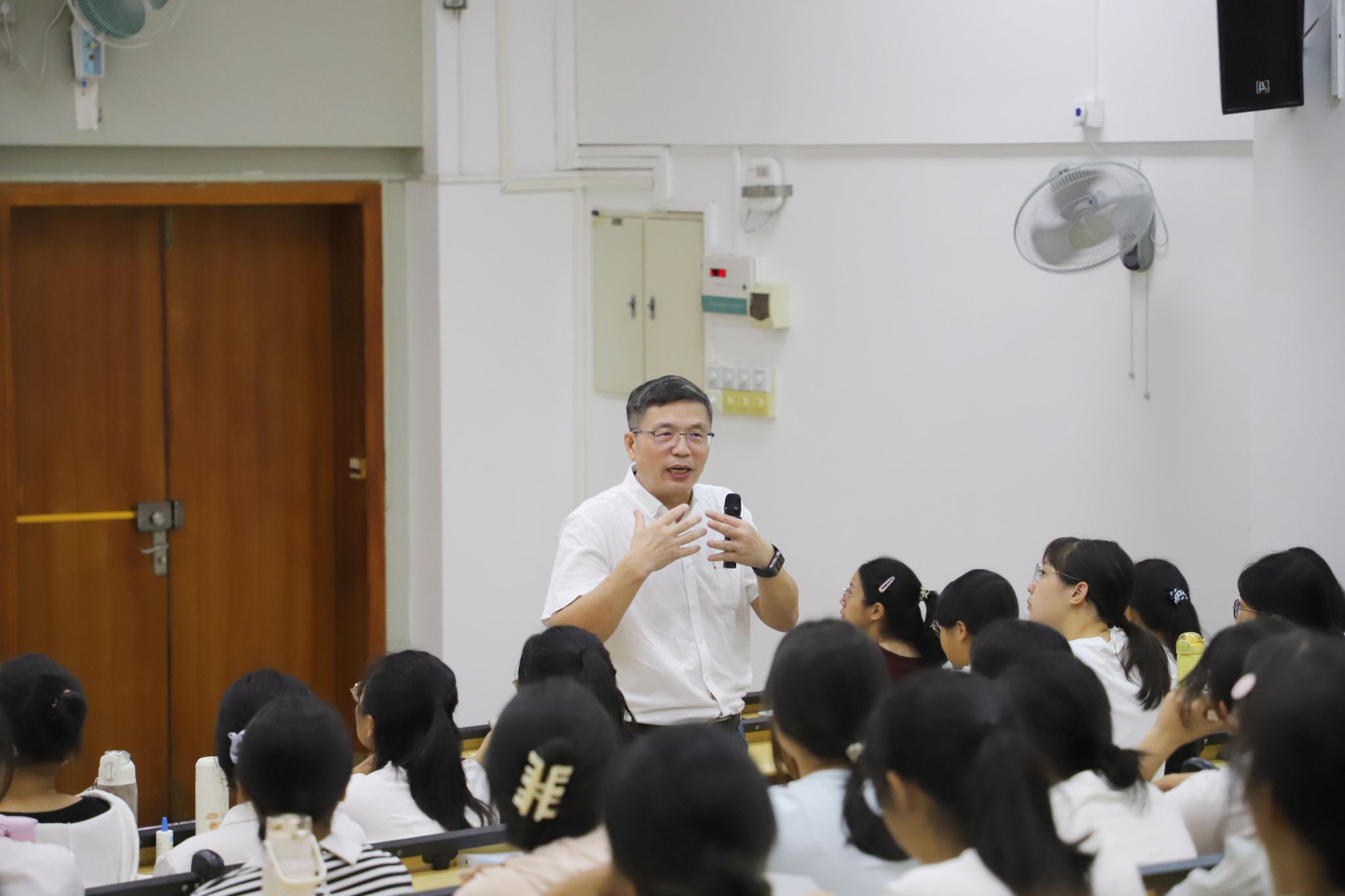 院长赵中源教授以“认识专业属性,增强专业自信”为题,为马院2025级本科新生带来“名师第一课”。他围绕思想政治教育专业的历史演进、基本情况和未来趋势三个维度,引导新生在大学阶段做好专业学习发展规划,探寻适配自身的成长路径。