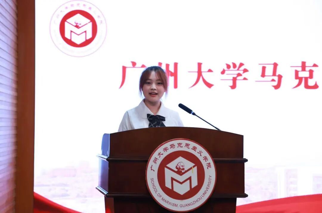 校友代表、中山大学硕士研究生许嘉炜同学回顾本科期间的求学经历,感念母校的辛勤栽培,并鼓励同学们善用广大马院提供的资源和平台,实现自我提升。他分享了三点体会:第一,认真研读经典原著,夯实理论基础;第二,积极参与学科竞赛,锻炼综合能力;第三,积极参与文体活动,保持身心健康。他祝愿同学们不忘初心,开启人生的崭新篇章。