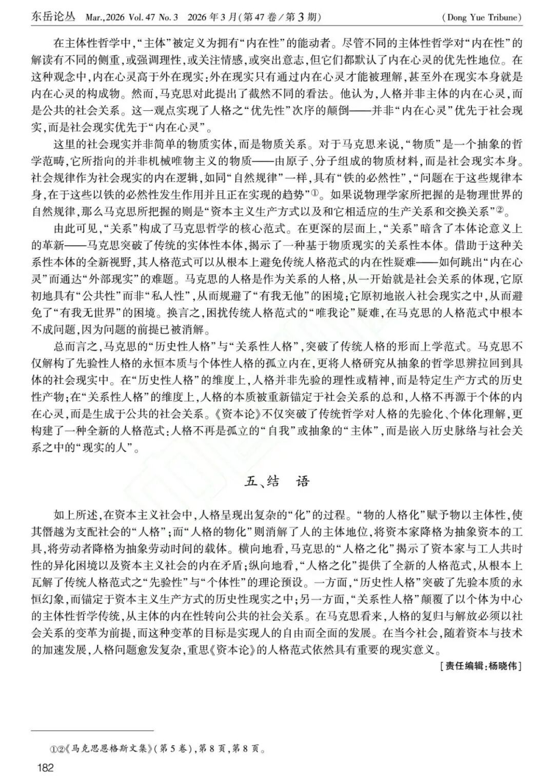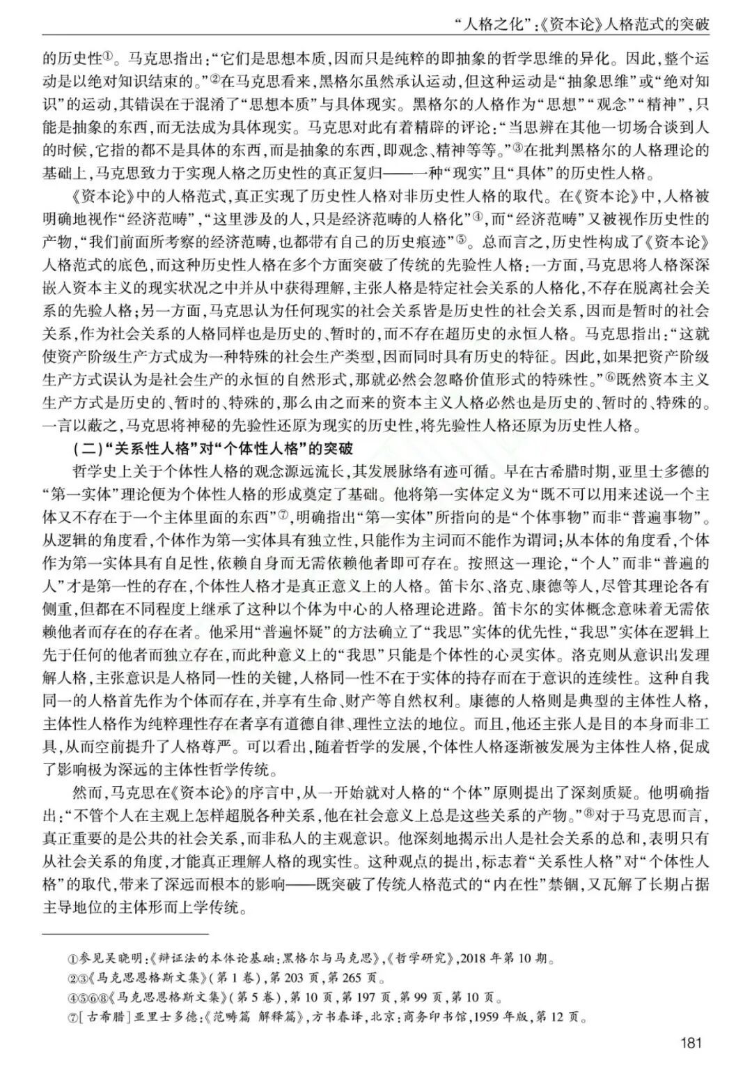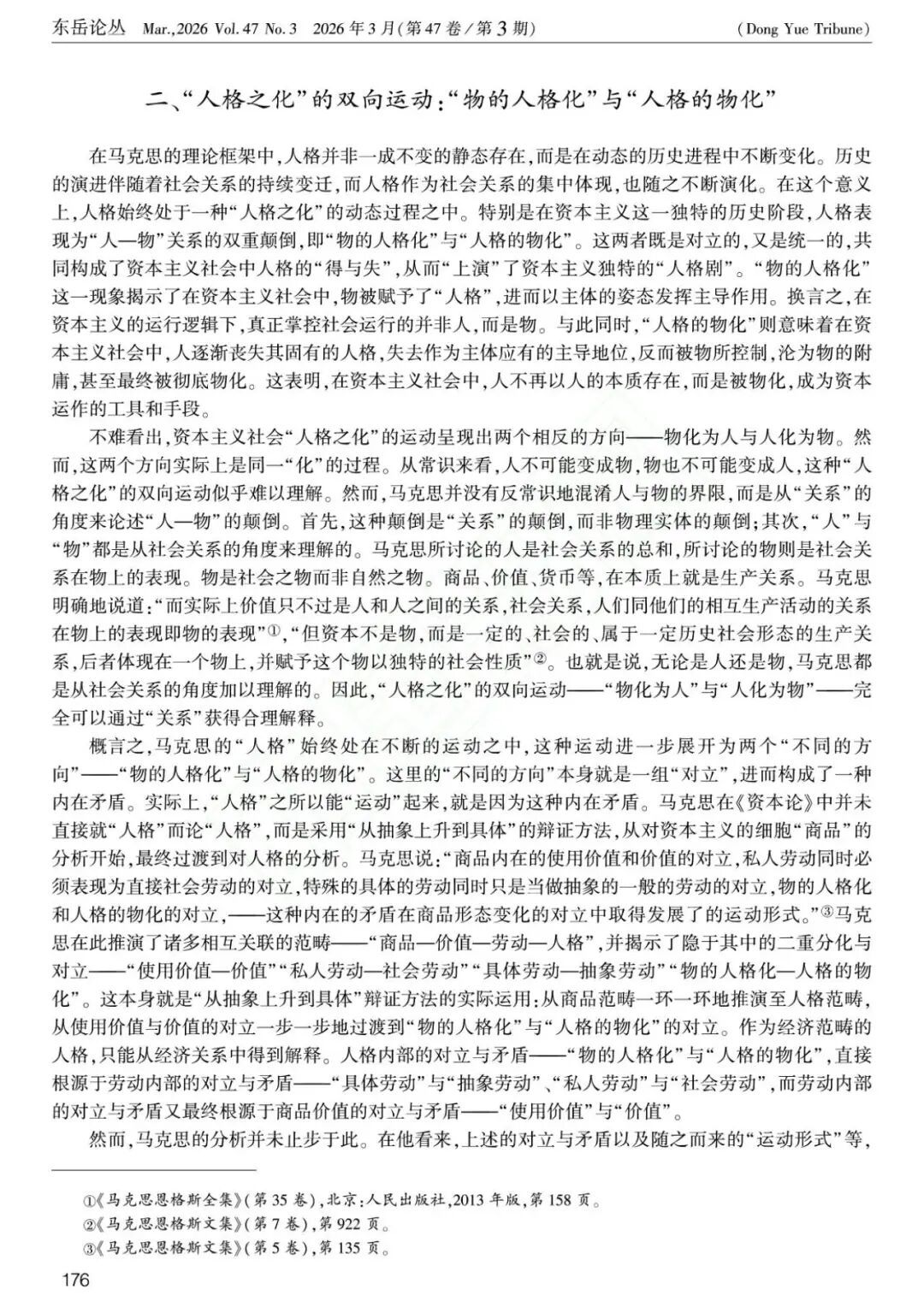 关键词:《资本论》;人格;关系;历史;物的人格化;人格的物化